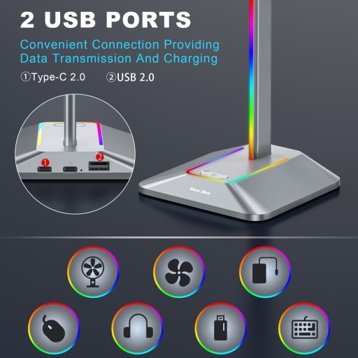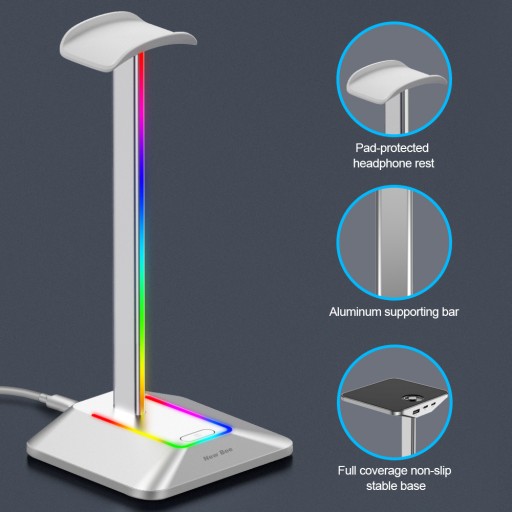 New Bee Z8 - Markowy stojak na słuchawki z podświetleniem LED i HUBem na dwa porty USB.