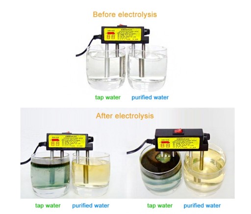 - przygotować wodę testową: wziąć 2 przezroczyste szklane kubki o pojemności 100~150ml, jeden kubek ze zwykłą wodą (woda z kranu), a drugi kubek z czystą lub destylowaną wodą i umieścić je obok siebie na stole. Najpierw użyj długopisu TDS, aby sprawdzić wartość TED tych dwóch kubków wody. Jeśli wartość TDS jest większa niż 300 ppm, woda nie nadaje się do eksperymentów elektrolizy.