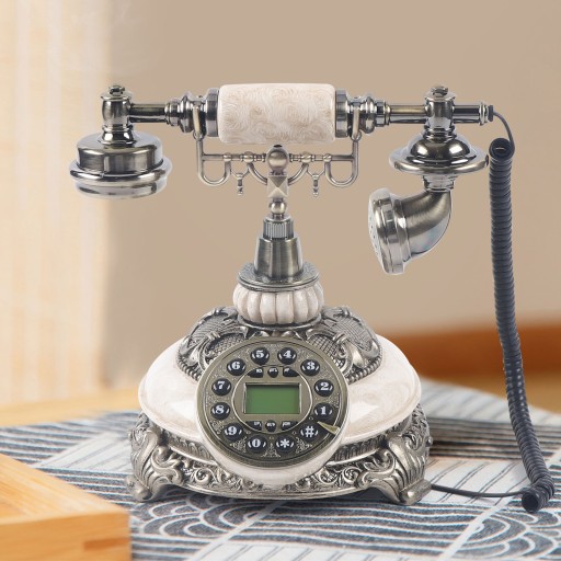 СТАРЫЙ РЕТРО СТАЦИОНАРНЫЙ ТЕЛЕФОН ОРНАМЕНТ БЕЛЫЙ