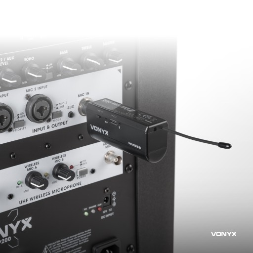 Ponieważ sam mikrofon jest bezprzewodowy, oprócz powyższych urządzeń można go łatwo podłączyć do głośnika imprezowego (pod warunkiem, że głośnik ma wejście Jack 6,3 mm). Ten mikrofon jest całkowicie typu plug-and-play! Dzięki Vonyx WM55B możesz wybierać pomiędzy mikrofonem nagłownym lub mikrofonem przypinanym do krawata. Dołączona do zestawu bateria jest wielokrotnego ładowania, dzięki czemu nie jesteś ciągle zależny od gniazdka. Dzięki 10 różnym kanałom, których częstotliwość można odczytać na cyfrowym wyświetlaczu odbiornika, zawsze masz kanał, na którym możesz po cichu śpiewać swoje ulubione piosenki.