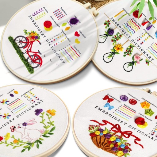 Zestaw zawiera 4 ściereczki do haftowania, 4 instrukcje, 1 wtyczkę tamborek (20 cm), 1 śrubokręt, 1 nożyczki, 1 nawlekacz igły i ilość igiełdawczą do wykonania obejmującego zestaw haftu z motywem krajobrazu.