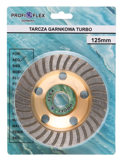 Tarcza garnkowa segmentowa zbudowana jest z metalowego korpusu, na którego obwodzie naniesiona została warstwa diamentowego proszku (syntetycznego) zatopionego w spoiwie metalowym. Dwadzieścia segmentów o wysokości 5 mm pozwala na długie użytkowanie tarczy. Specjalna ściernica diamentowa służy do oczyszczania i szlifowania nierówności na powierzchniach betonu, betonu licowego, cegły, kostki brukowej, klinkieru, gazobetonu, płytki ceramicznej.