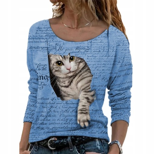 BLUZKA KOBIECA MODNA DŁUGI RĘKAW 3D KOT PRINT