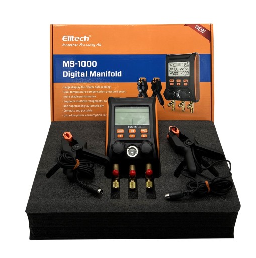 Nowy Elitech MS-1000 to połączenie jakości i ceny. Jest to przystępna cenowo jednostka o mocy i umiejętnościach inteligentnego narzędzia. MS-1000 zapewni Ci prostą wizualizację odczytów, przyciski i funkcje są bardzo intuicyjne, dzięki czemu praca profesjonalisty HVAC jest łatwa i wygodna.