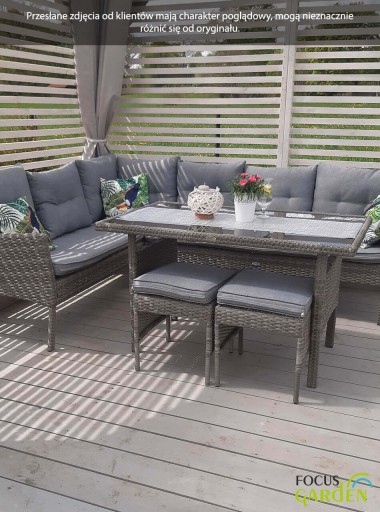 Meble z technorattanu CORTINA nie tylko zachwycają designem, ale także praktycznością. Szkło hartowane o grubości 5 mm pokrywające blat stołu gwarantuje bezpieczeństwo i elegancję, a łatwa konserwacja całego zestawu sprawia, że utrzymanie mebli w nienagannym stanie jest niezwykle proste.