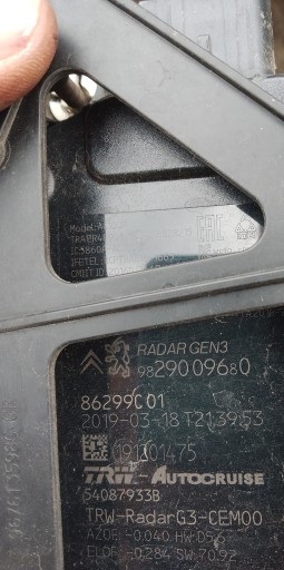Oferuję RADAR + stelaż PEUGEOT 3008 II 5008 II i inne o nr : RADAR 9829009680 + STELAŻ 9814392380