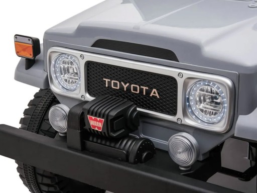 Duży, przestronny terenowy, dwuosobowy samochód dla dziecka na pilota Toyota jest jak przystało na licencjonowany pojazd starannie dopracowany chromowane plastikowe dodatki, gadżety typu ledowe oświetlenie dające rewelacyjne efekty świetlne, logo Toyota zadowoli każdego młodego kierowcę. Pojazdem można sterować za pomocą pilota lub dziecko może sterować autkiem samodzielnie, jak już pozna zasady jazdy. Na desce rozdzielczej znajduje się panel odpowiedzialny za muzykę, melodie, pogłaśnianie, przyciszanie, stan naładowania baterii, jazdę wolną (przycisk z żółwiem) szybką (przycisk z królikiem), włącznik świateł. Po lewej stronie z boku znajduje się lewarek do zmiany kierunku jazdy, przód, stop, tył.