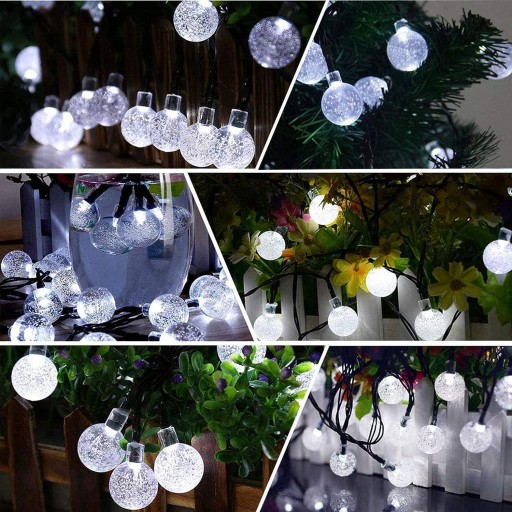 Krystaliczna konstrukcja bąbelkowa i bezpieczny w użyciu: Wykonany z materiału ABS o kształcie kryształowej żarówki, wodoodporny i trwały. Zasilany energią słoneczną, niskie zużycie mocy i niskie napięcie, bezpieczny w użyciu! Bez okablowania, żarówka 1,8 cm, panel słoneczny ze stojakiem na paliki ogrodowe, łatwy do zainstalowania na ścianie, oknie, drzewie