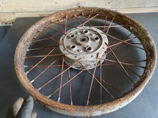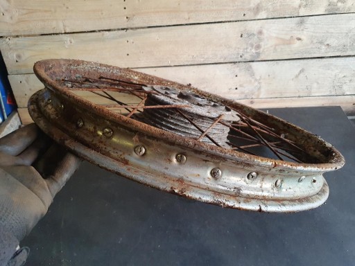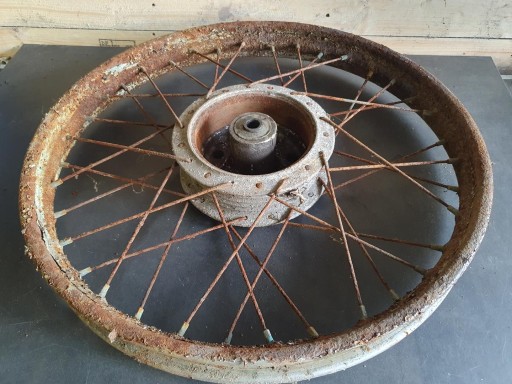 OFERTĄ DZISIEJSZEJ AUKCJI JEST KOŁO TYŁ PROSTE ORYGINAŁ DO MOTOCYKLA WSK M06 - Z2 Z 1964 ROKU. STAN JAK NA ZAŁĄCZONYCH ZDJĘCIACH.