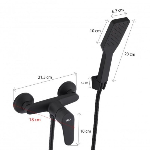 ścienna, jednouchwytowa, wykonana z mosiądzu. Doskonałą jakość czarnej powierzchni gwarantuje nowoczesna technologia malowania proszkowego. Słuchawka prysznicowa z uchwytem oraz wąż 150 cm są dołączone do kompletu.