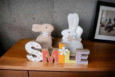Drewniana dekoracja ładnie wygląda na przykład w oknie lub na stole.