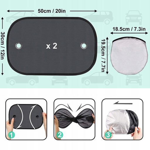 OPTYMALNE WYMIARY: Nadaje się do prawie wszystkich pojazdów. Dzięki rozmiarowi 50 x 30 cm dziecięce osłony przeciwsłoneczne do samochodu zapewniają szerokie pokrycie bocznych szyb samochodu i wystarczającą ochronę przed wpadającymi promieniami słonecznymi. Praktyczny i niezbędny latem dodatek do samochodu. (Pamiętaj, aby sprawdzić rozmiar okna samochodu przed zakupem)