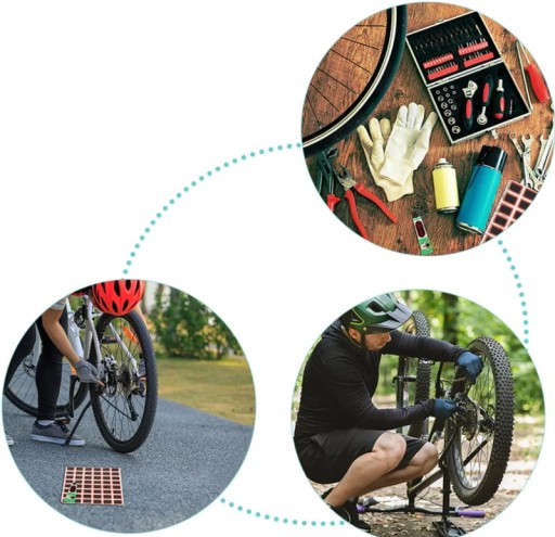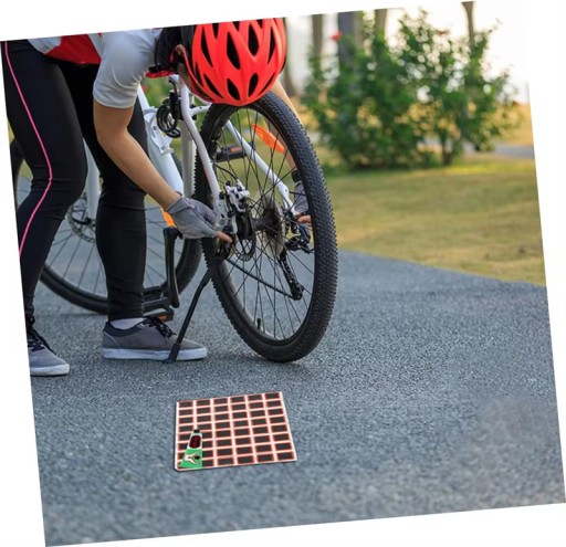 Zestaw łatek służący do samodzielnej naprawy przebitej opony rowerowej.