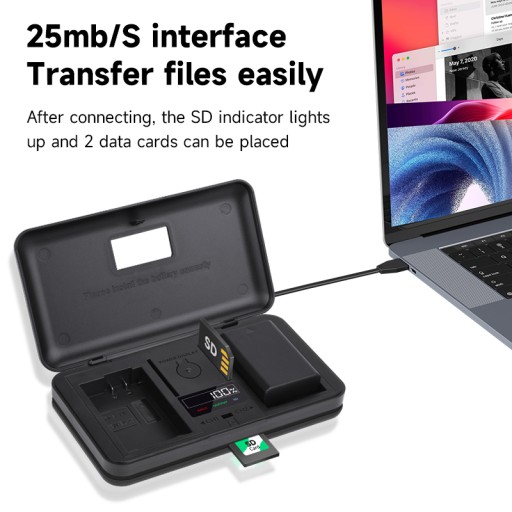 1. Zawiera interfejs wejściowy typu C i USB, który może ładować 1 lub 2 akumulatory jednocześnie;