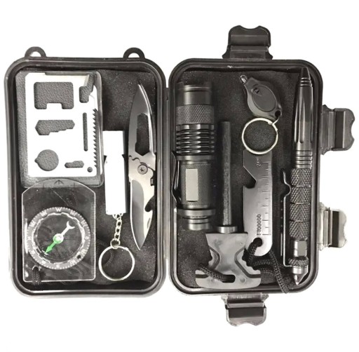 Zestaw survivalowca 10 w 1 w praktycznym pudełku SOS