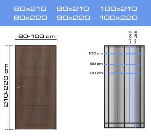 ✅Uniwersalny rozmiar: 6W1 możesz dopasować rozmiar szerokość drzwi 80 lub 90 lub 100 cm na wysokość 210 lub 220 cm