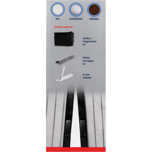 10. Zdjąć papier zabezpieczający ze spodnich części rzepów i przykleić za ich pomocą obie części siatki do ościeżnicy.
