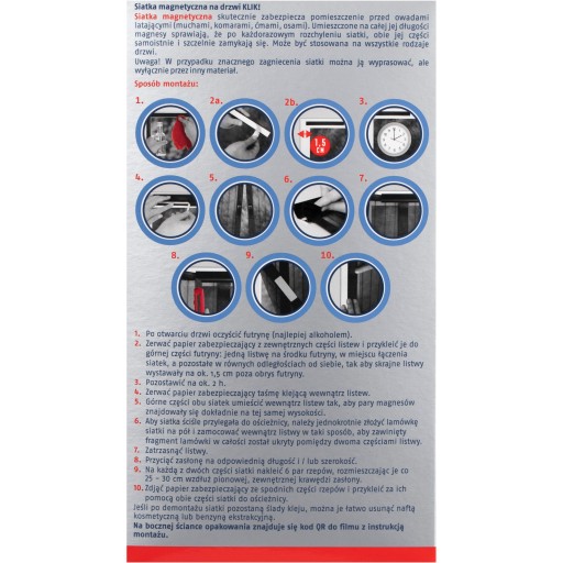 Nasza siatka magnetyczna na drzwi jest bardzo łatwa w instalacji - po prostu przymocuj ją do ramy drzwiowej przy użyciu magnesów, które są już dołączone do produktu. Nie trzeba korzystać z żadnych narzędzi ani kleju, co oznacza, że można ją zainstalować w ciągu kilku minut.