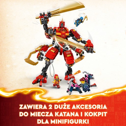 - Ruchoma figurka mecha — ramiona, nogi, tułów, głowa i stopy mecha ninja są ruchome i wyposażone w dwa duże miecze katany oraz otwierany kokpit z miejscem na minifigurkę
