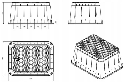 - Pokrywa oraz korpus wykonany z Polietylenu PEHD, są one odporne na warunki atmosferyczne oraz mechaniczne.