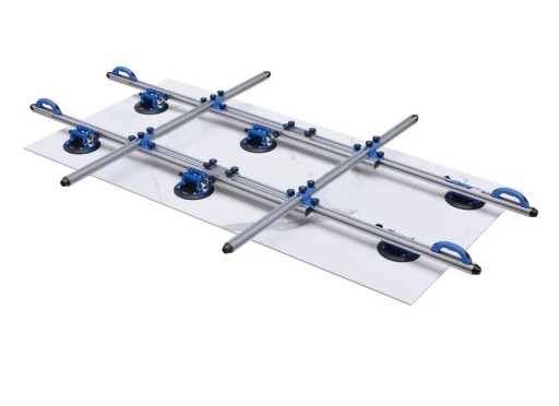 Uchwyt, stelaż, nosidło, rama, narzędzie do montażu dużych, gładkich płyt, płytek, spieków, szyb wraz z 6 przyssawkami na podciśnienie.