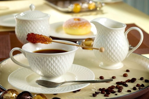 Elegancki zestaw do herbaty z kolekcji ceramiki szlachetnej w śmietankowym odcieniu bieli. Serwis do herbaty lub kawy Eclat i pozostałe elementy kolekcji wyróżniają się elementem zdobiącym naczynia. Jest to relief w formie kratki na całej powierzchni naczyń oraz brzegach talerzy i spodków. Zestaw do herbaty Eclat to połączenie klasycznego designu z wygodą użytkowania. Stylowe stopki dodają naczyniom lekkości i finezji. Na uwagę zasługuje pełen uroku, pojemny dzbanek do herbaty o zaokrąglonym kształcie. Serwis do herbaty i cała zastawa Eclat doskonale sprawdzi się zarówno w codziennym użytkowaniu, jak również, przy doborze odpowiednich dodatków, jako nakrycie stołu na wyjątkowe okazje.