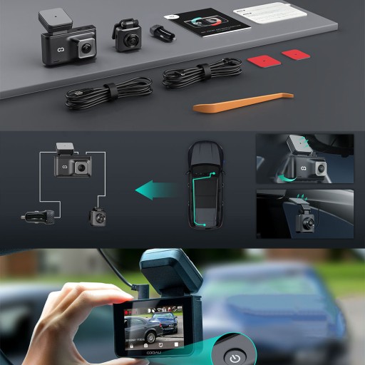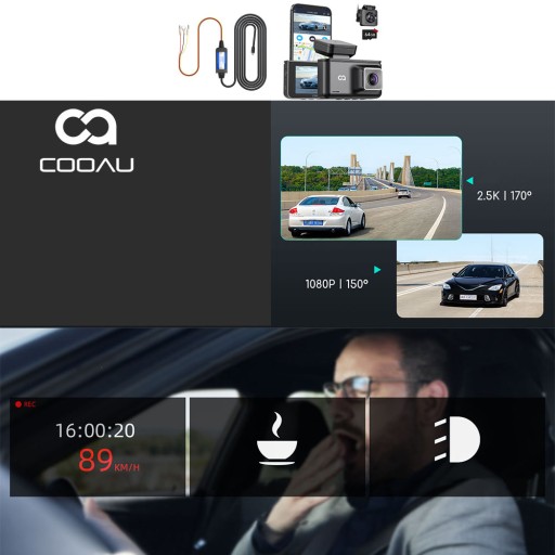 COOAU Wideorejestrator Kamera WIFI GPS 2.5K + Cofania Wideo Rejestrator Jazdy Tylna 1080P