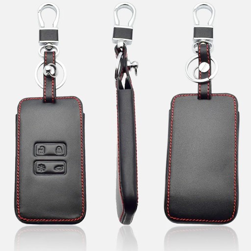 W ofercie posiadamy ręcznie szyte etui, odpowiadające kluczykom wszystkich marek i modeli samochodów osobowych i nie tylko. Kluczyki zostały wykonane z naturalnej skóry w kolorze czarnym, obszywanej grubą, czerwoną nicią.Do każdego etui przymocowany jest praktyczny stalowy karabińczyk, lakierowany na tytanowy kolor.