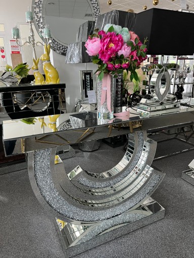Bardzo elegancka konsola z kolekcji lustrzanej o nietypowym kształcie.