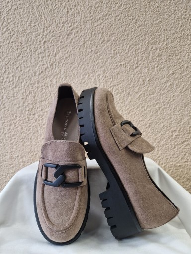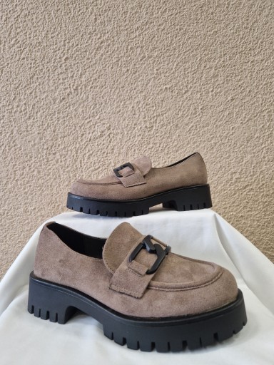 ТЕМНО-БЕЖЕВЫЕ ЗАМШЕВЫЕ МОКАСИНЫ НА ТОЛСТОЙ ПОДОШВЕ GOODIN Размер 38