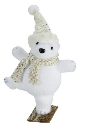 FIGURKA zimowa 28cm MIŚ POLARNY w beżowej czapce