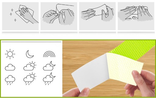 ⭕ A: Tak, taśma jest zaprojektowana, aby wytrzymać deszcz i zmienne warunki atmosferyczne bez utraty swoich właściwości odblaskowych.