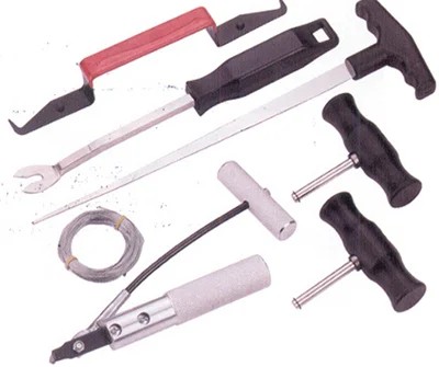 W zestawie: linka do wycinania szyb oraz dwa uchwyty przyrząd do przebijania i przewlekania linki przyrząd do podważania zabezpieczeń przyrząd do odciągania nóż do wycinania