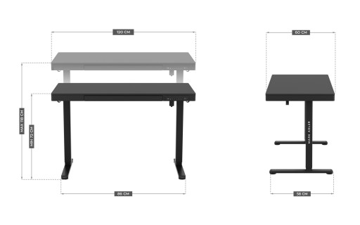 - Duży zakres regulacji: blat na wysokości od 72 do aż 118 cm
