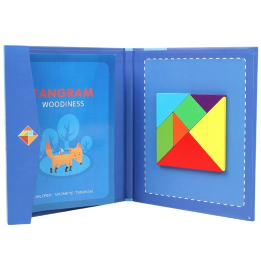 Oto niesamowity zestaw Tangram Książeczka - układanka 3D z drewnianymi klockami, który zapewni Twojemu dziecku godziny fascynującej i rozwijającej zabawy! Jest to produkt, który zapewnia nie tylko radość z układania, ale również dodatkową atrakcję dzięki magnetycznym właściwościom klocków.