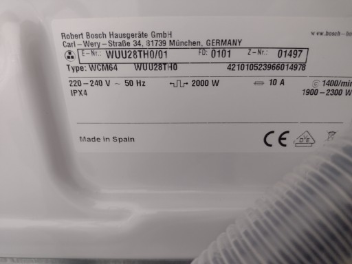 Pralka została zakupiona w Niemczech jest w pełni sprawna i gotowa do użytku.