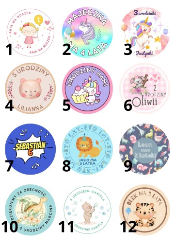 Zestaw okrągłych personalizowanych naklejek i torebek można wykorzystać na wiele sposobów i samodzielnie niskim kosztem stworzyć upominki dla gości, dla dzieci z grupy żłobkowej/przedszkolnej czy z klasy.