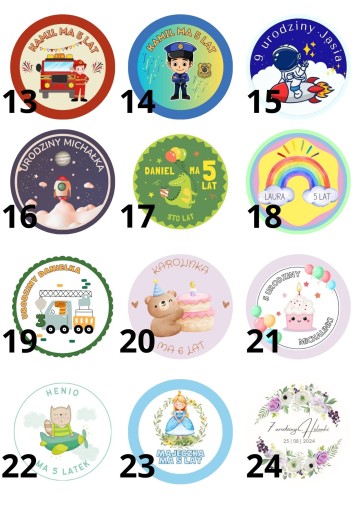 Набор из 24 бумажных пакетов + 24 персонализированных наклейки для детских дней рождения.
