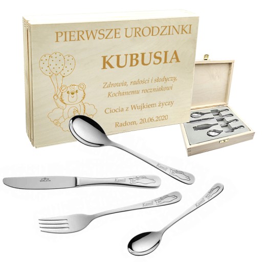 - na każdym sztućcu zostanie wykonany indywidualny grawer.