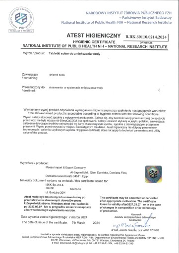 Tabletka jest bezzapachowa, a jej użycie zapewni wodzie doskonałe parametry. Woda będzie w pełni bezpieczna dla zdrowia i gotowa do natychmiastowego użycia.