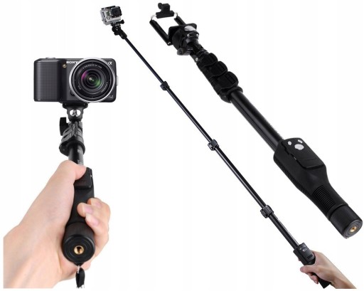 Profesjonalny,teleskopowy, monopod-selfie stick bluetooth do smartfonów,aparatów oraz kamer sportowych (typu GoPro). Kijek pasuje do wszystkich kamer oraz aparatów ze standardowym mocowaniem gwintem1/4"