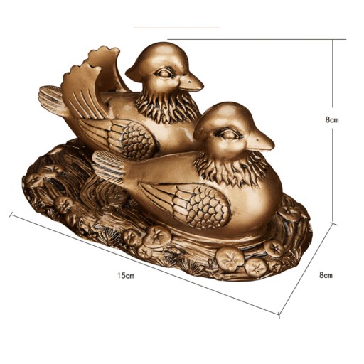 Opis: Kaczki mandarynki to ucieleśnienie miłości, symbol kochanków w chińskiej tradycji ludowej. Można go umieścić w pokoju jako dekorację domu. Kaczka mandarynka jest symbolem miłości i małżeństwa. Dobry prezent dla miłośników i kolekcji, również jako prezent ślubny. Jeśli wymaga czyszczenia, delikatnie ubij powierzchnię miękką ściereczką.