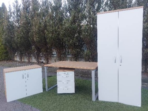 Do sprzedania używany zestaw mebli biurowych biurko w kolorze jesion