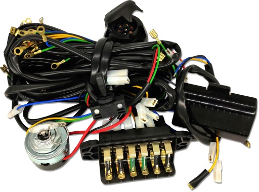 Wszystkie podzespoły w zestawie (tj.: stacyjka czy przełącznik), są już podłączone do przewodów.
