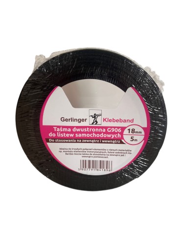 Przedmiotem aukcji jest dwustronna taśma GERBAND G906 18mm/5m do listew samochodowych.