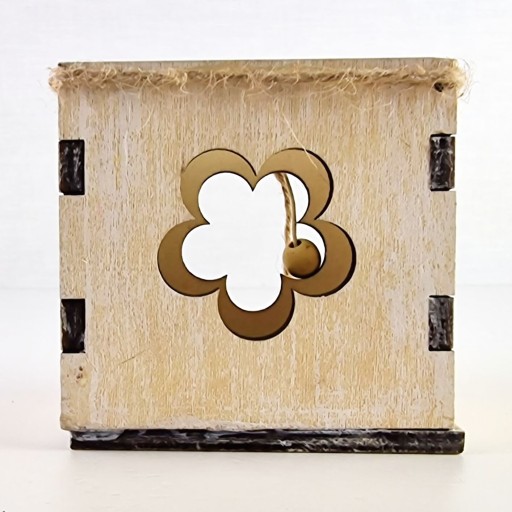 ДЕРЕВЯННАЯ КОРОБКА МАЛЕНЬКИЙ ДЕКОРАТИВНЫЙ ЦВЕТОК, БЕЛЫЙ
