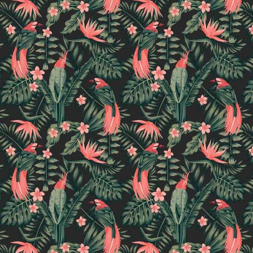 - Wykonany z tkaniny Poliester - Nadruk papugi z liśćmi decor 220gr/m2