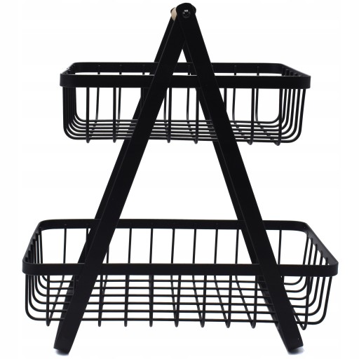Koszyk piętrowy na owoce wykonany z prętów stalowych malowanych proszkowo. Może posłużyć do przechowywania owoców lub warzyw. Koszyk fantastycznie prezentuje się zarówno na kuchennym blacie jak i na eleganckim stole. Idealnie komponuje się z wnętrzami urządzonymi w stylu loft. Drewniana rączka do przenoszenia.