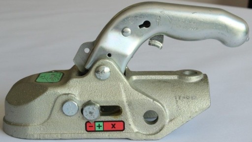 Żeliwny zaczep kulowy KNOTT do urządzenia najazdowego. KNOTT K27-a numer producenta 8802709X. Maksymalne DMC 2700 kg, nacisk na kulę haka 150 kg. Rozstaw otworów montażowych 40 mm. W zestawie dwie śruby montażowe z nakładkami o średnicy 14 mm.