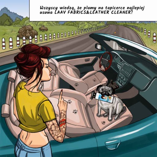 Skóra tapicerki delikatna niczym pupa niemowlaka tylko z LAAV® FABRIC & LEATHER. Ogarnie usuwanie plam jak i regularne czyszczenie i pielęgnację wnętrza samochodu.